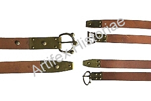 Ich fertige meine Gürtel aus kräftigem, ca. 3,5-4 mm starkem, vegetabil gegerbtem Rindleder. Schnallen und Beschläge bestehen aus